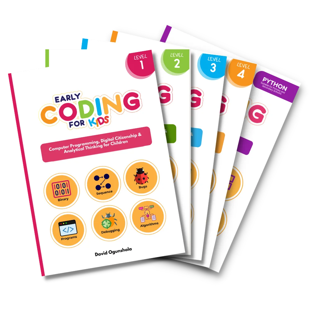 The Early Coding for Kids textbook series Level 1 - 5 (2 Sets).